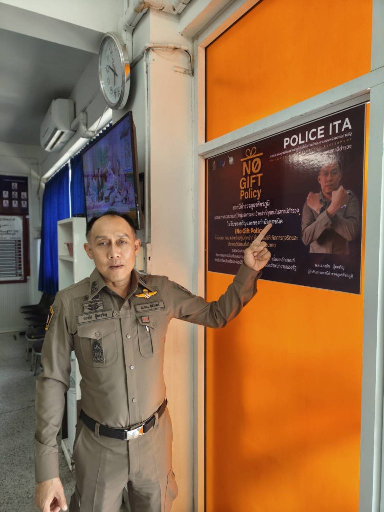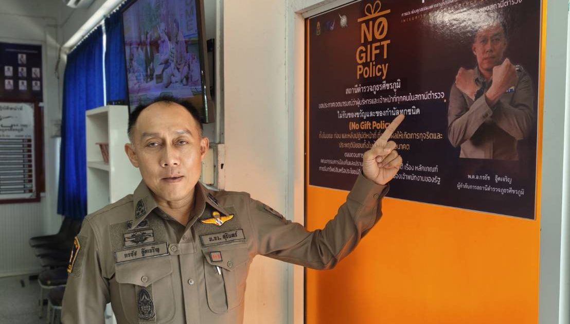 5 มีนาคม 2568 พ.ต.อ.กรธัช อู๊ดเจริญ ผกก.สภ.ศีขรภูมิ ได้ติดตั้งป้ายไม่รับของขวัญและของกำนัลทุกชนิด บริเวณห้อง one stop service เพื่อประกาศเจตนารมย์ในการบริหารงานสุจริต ต่อต้านคอรัปชั่นทุกรูปแบบ