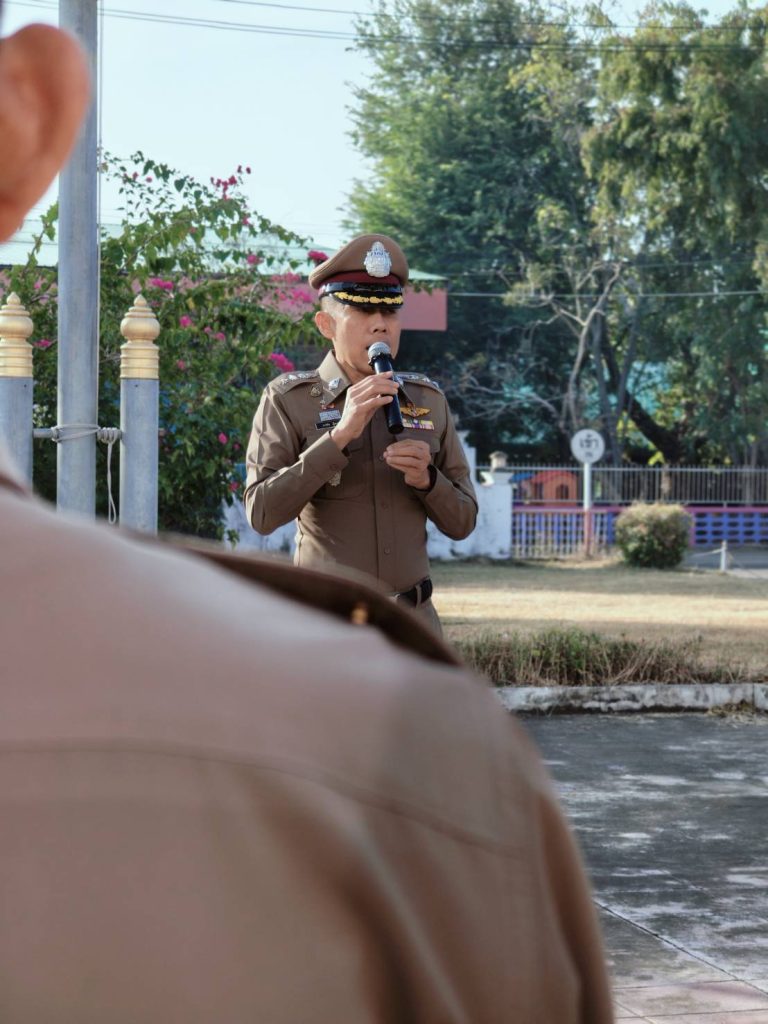 วันที่ 18 กุมภาพันธ์ 2568 เวลา 08.00 น. พ.ต.อ.กรธัช อู๊ดเจริญ ผกก.สภ.ศีขรภูมิ นำข้าราชการตำรวจ เคารพธงชาติ สวดมนต์ไหว้พระ กล่าวคำปฏิญาณและท่องอุดมคติตำรวจ อบรมคุณธรรมจริยธรรม กำชับการปฏิบัติหน้าที่ด้วยความซื่อสัตย์ สุจริต ไม่รับสินบนหรือของกำนัลทุกชนิดจากการปฏิบัติหน้าที่ ตรวจความเรียบร้อยการแต่งกายทั้งเครื่องแบบและทรงผม เพื่อสร้างภาพลักษณ์ที่ดี และให้การบริการแก่ประชาชนด้วยความสุภาพอ่อนน้อม ดุจญาติมิตร ให้การบริการอย่างเท่าเทียม ไม่เลือกปฏิบัติ