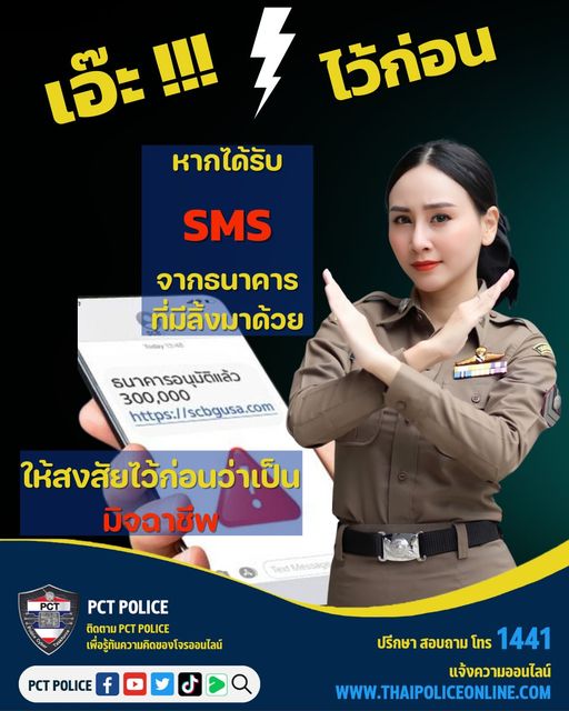 หากท่านได้รับ SMS ใด ๆ จากธนาคาร แล้วมีการแนบลิงก์มาด้วย ให้สงสัยไว้ได้เลยว่าเป็นมิจฉาชีพแน่นอน เนื่