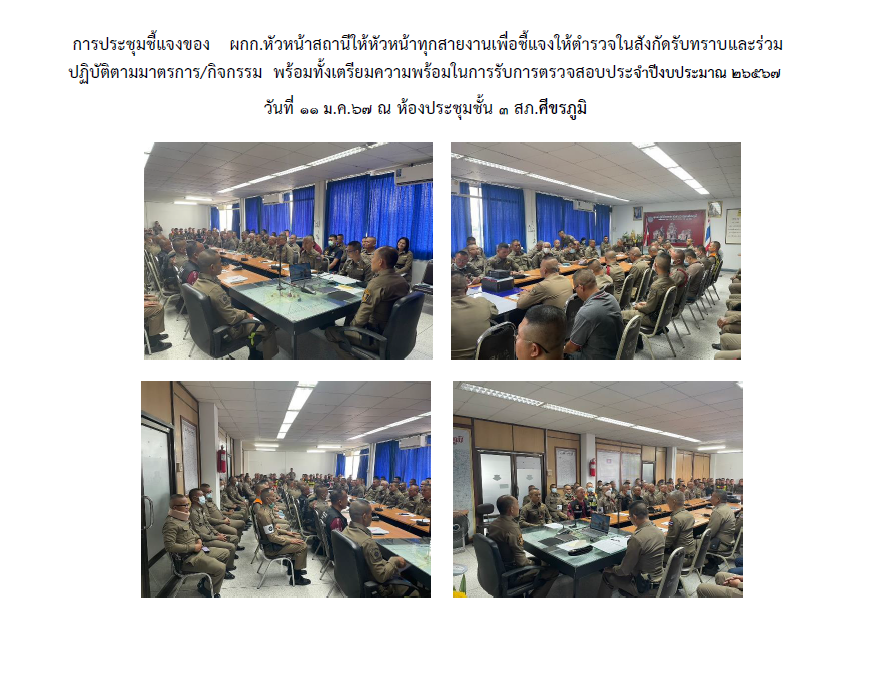 วันที่ 5 พ.ย. 2567 พ.ต.อ.กรธัช อู๊ดเจริญ ผกก.สภ.ศีขรภูมิ จัดให้มีการประชุมชี้แจงและให้ข้อมูลเกี่ยวกั