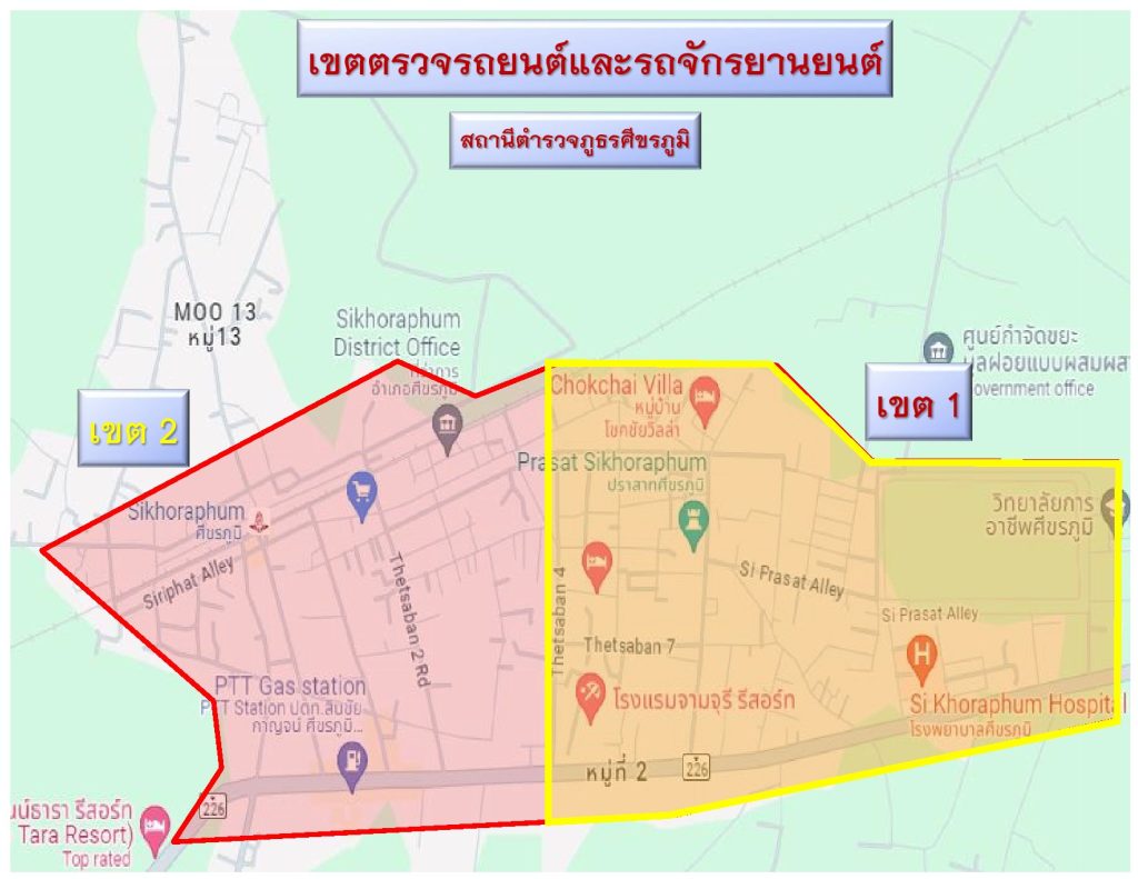 เขตตรวจรถยนต์และรถจักรยานยนต์ จำนวน 2 เขต รับผิดชอบพื้นที่ในเขตเทศบาลตำบลศีขรภูมิ(ตำบลระแงง)