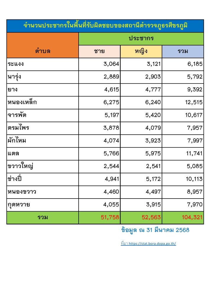 ข้อมูล ณ วันที่ 31 มีนาคม 2568